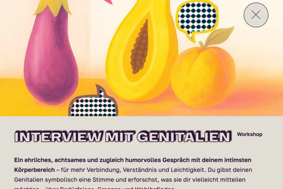 An den Porny Days lade ich dich zu einem persönlichen 1:1-Workshop „Interview mit deinen Genitalien“ ein. Wenn du dabei sein möchtest, melde dich ab 1. November gerne über die Webseite der Porny Days an! Freitag 28. November 2025 Samstag 29. Novemve 2025